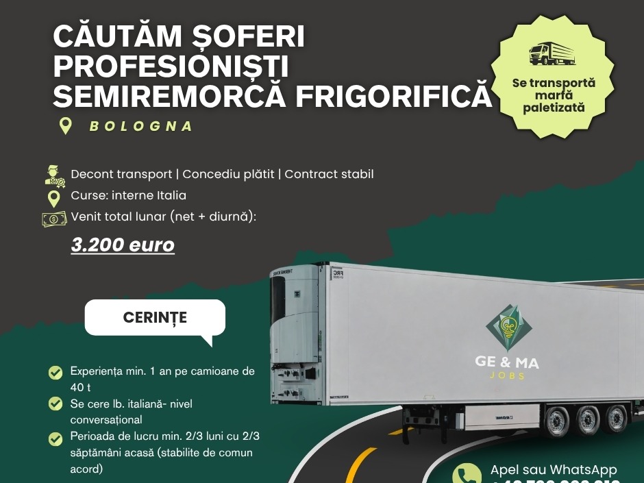 8 apr.Șofer C+E Frigo - Transport Intern Italia